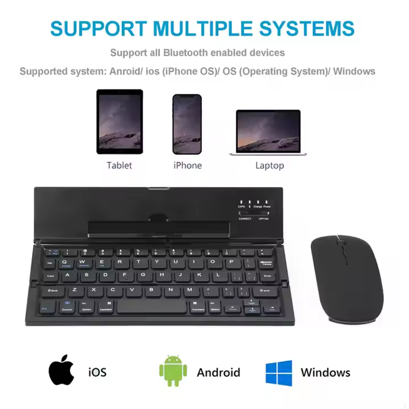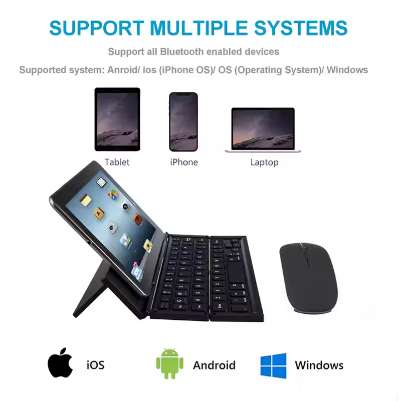 ⌨️ Tri-Fold Bluetooth Keyboard | 3-System Slim & Silent (Win Android iOS) 💻🔄📱 Portable & 10m Range