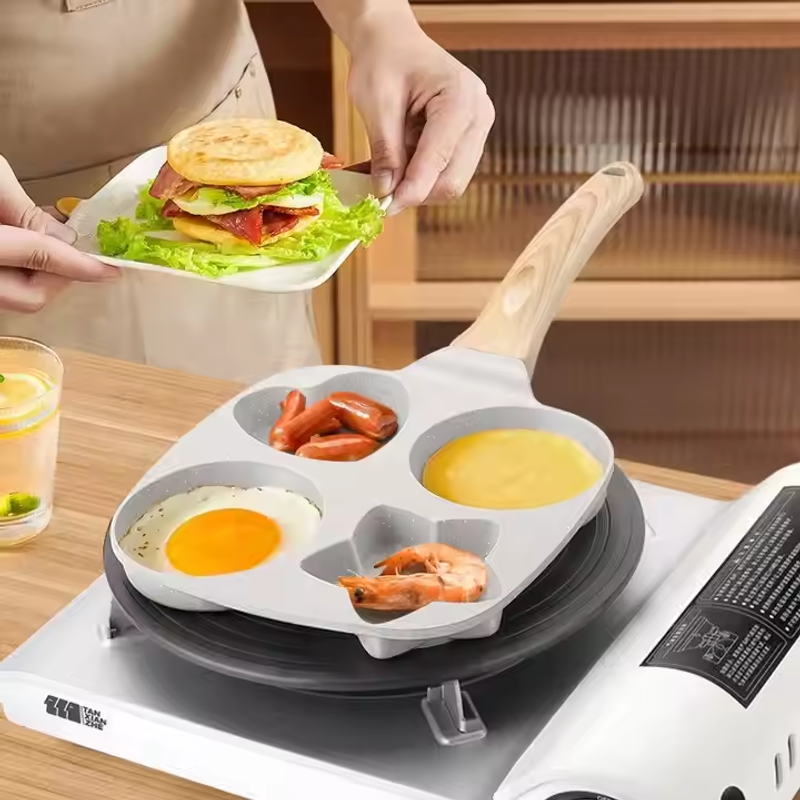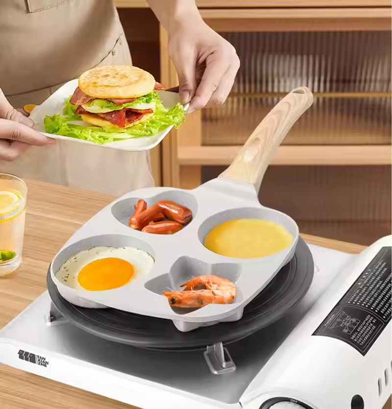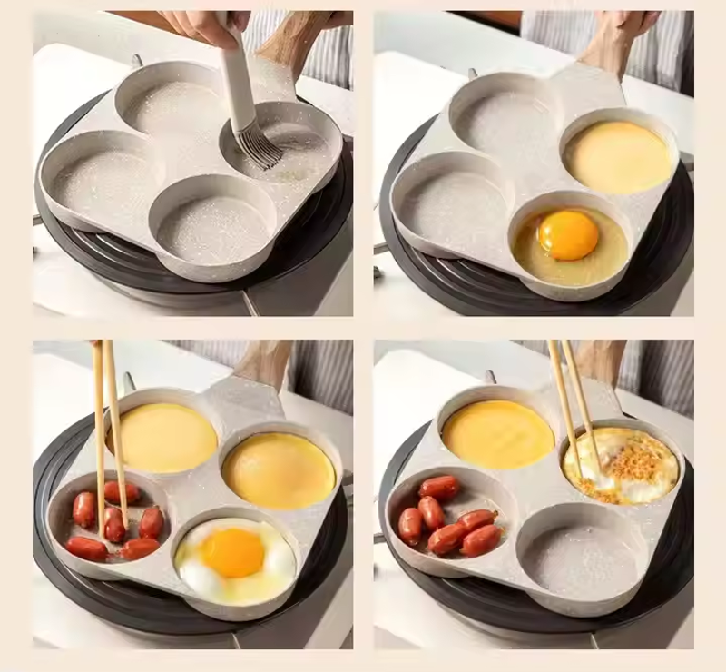 ❤️ 4-Heart Marble Stone Breakfast Pan 🔥 Nonstick & Multi-Stove Ready | 3-Min Magic ⏰