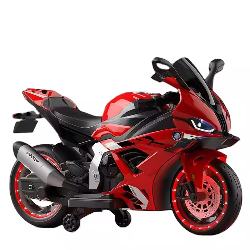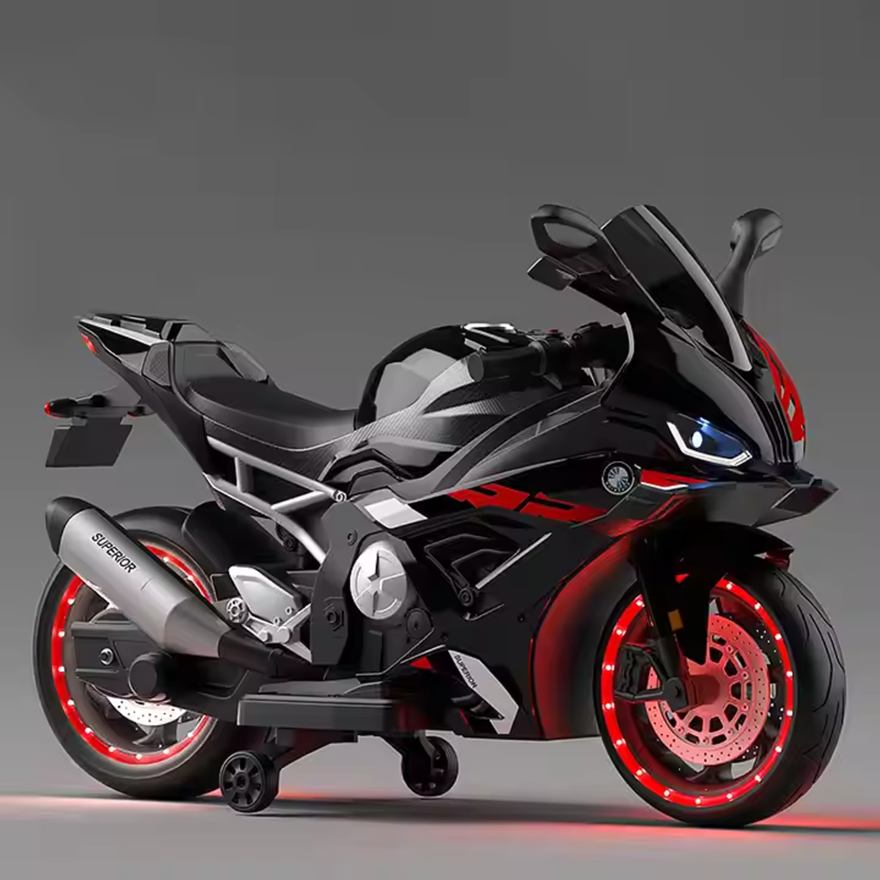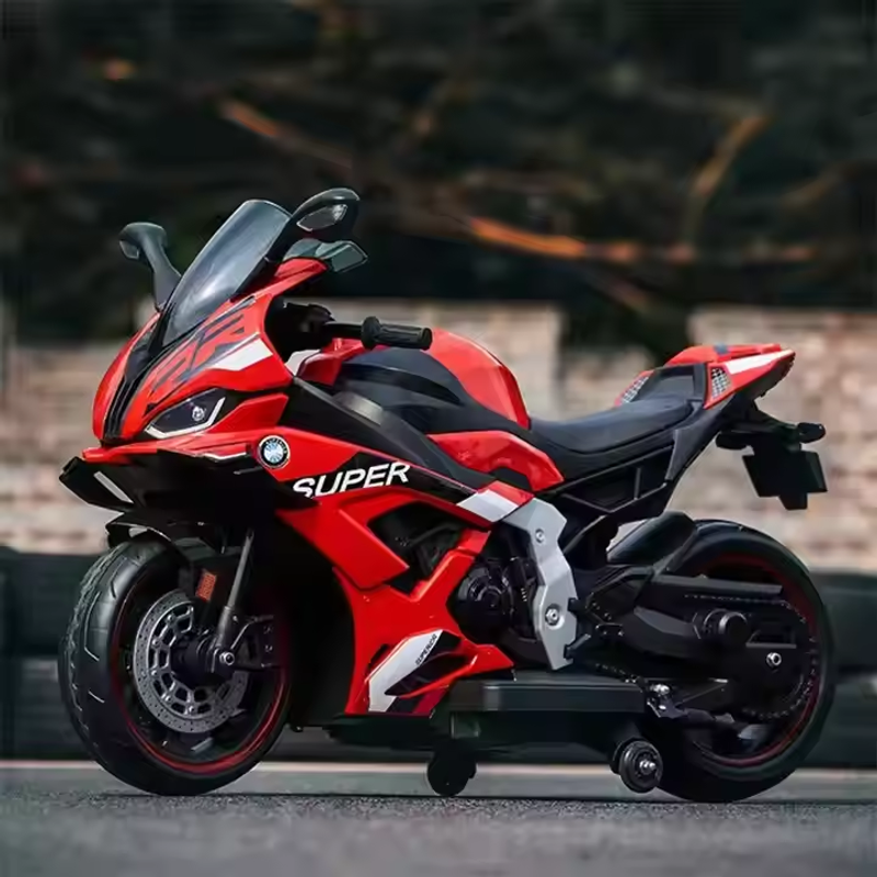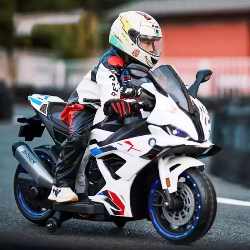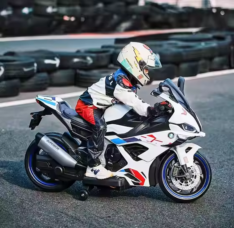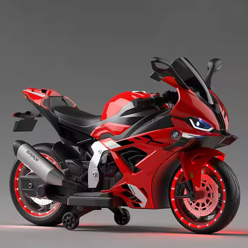 🏍️Kids Electric Motorcycle | 12V Battery | Bluetooth Music | LED Lights & Safety Wheels