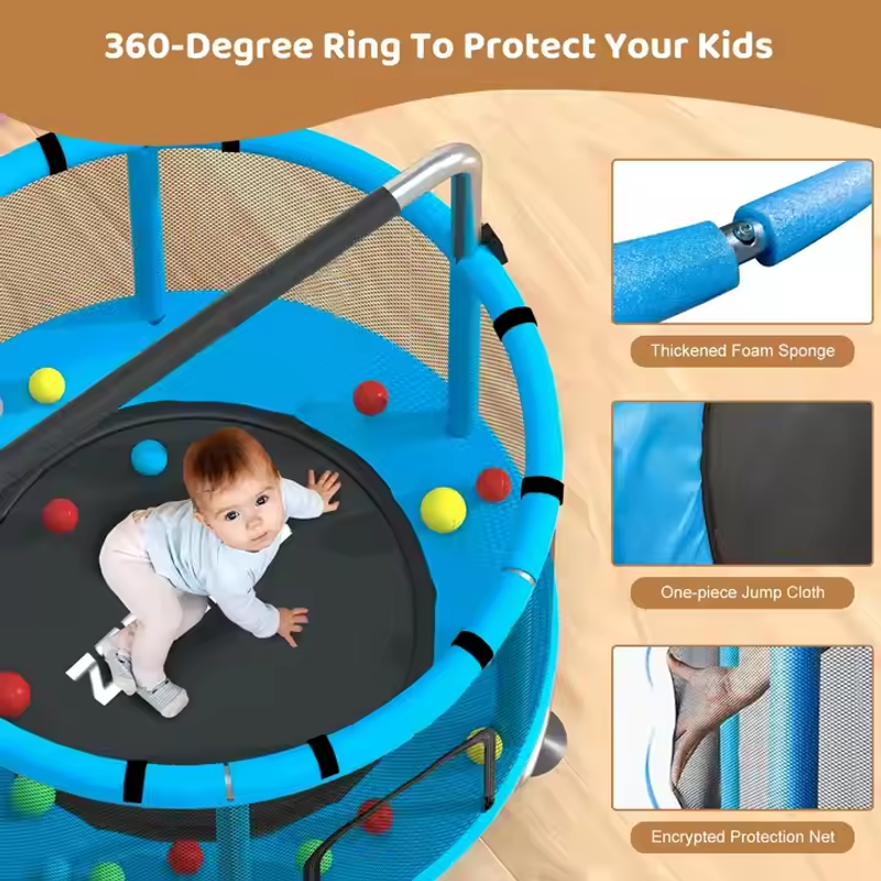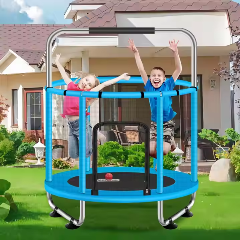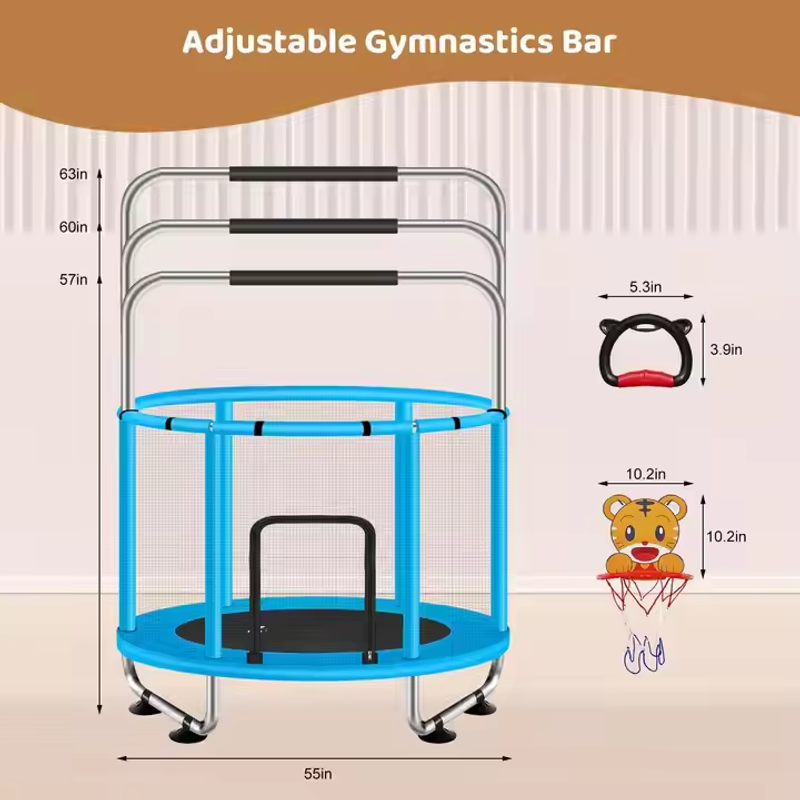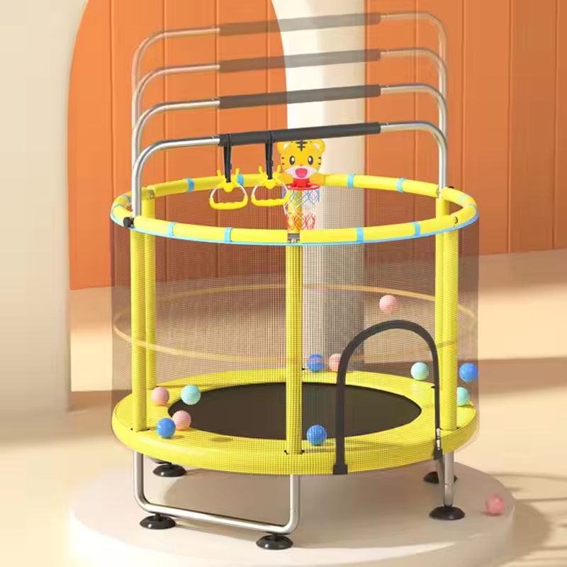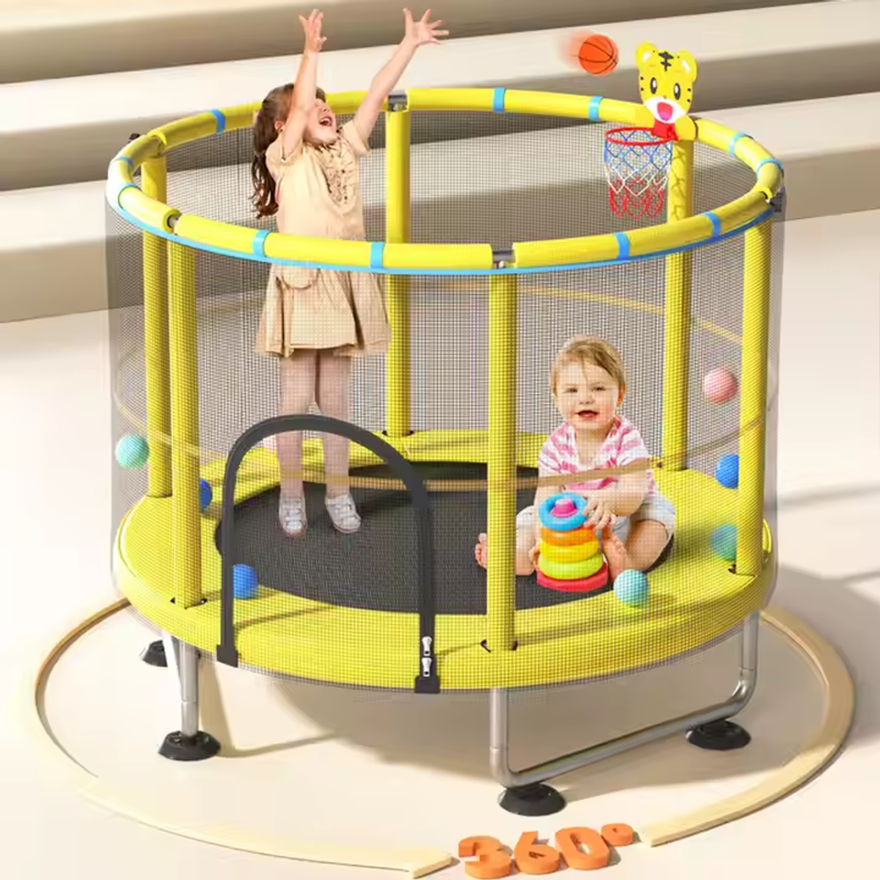 🏠 Kids Indoor Trampoline 🌟 150cm Diameter | Adjustable Height | 360° Safety Net ⚡️