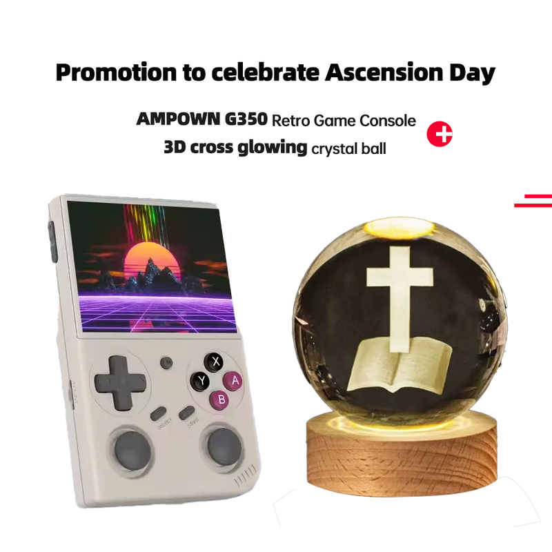 🔥 Ascension Day Combo: AMPOWN G350 Retro Game Console ✝️✨ Save GHS 1,080 + FREE 3D Cross Crystal Ball!